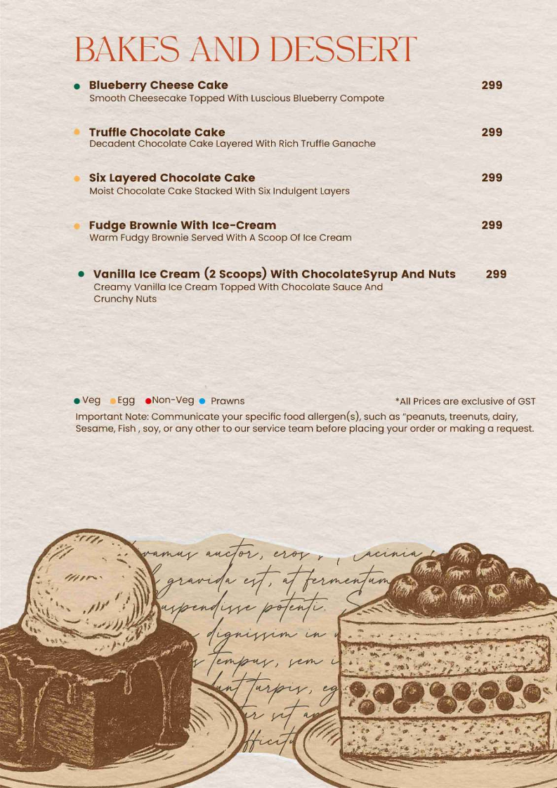 Don’t overlook the tempting selection of bakes and desserts! Indulge in a Butter Croissant for just ₹149, flaky and made fresh each day, or treat yourself to their Tiramisu, a classic Italian delight that can be yours for ₹299. With layers of coffee-soaked sponge and luxurious mascarpone, it’s the perfect sweet ending to your visit.